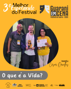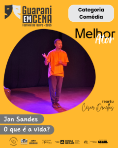 Após uma passagem marcante pelo Guarani em Cena | Festival de Teatro, o ator Jon Sandes está de volta a Guarani para apresentar o mesmo espetáculo que conquistou o público e o júri do festival, ‘O que é vida?’.